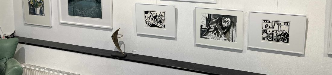 Malerei & Grafik von E. U. Jacobi, Tuschzeichnungen und Künstlerbücher von Beate Schwarz, Skulpturen von Frank Brunzlow.